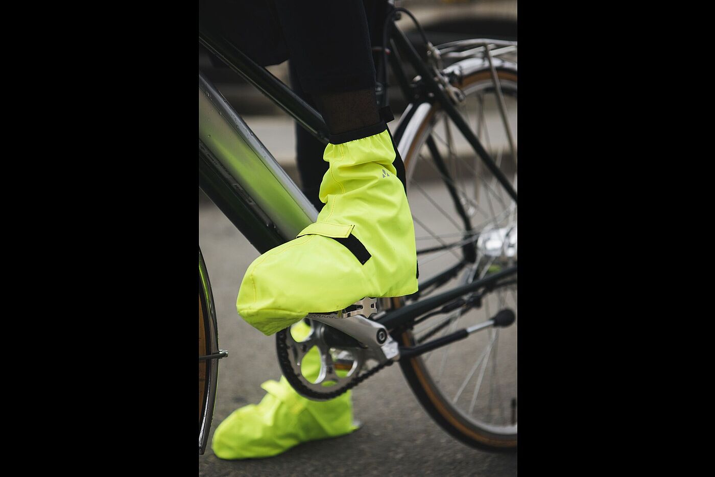 Überschuhe gibt es als Wind- und Regenschutz wie die Bike Gamaschen von Vaude (24 Euro) oder als besser isolierende Variante aus Neopren wie den Heavy Duty OSS von BBB (32,95 Euro). Gerade für längere Touren bieten sich letztere an. Im Alltag muss man etwas aufpassen, denn die meisten Überschuhe umfassen die Fußspitze und haben einen Riemen, der unterhalb der Sohle verläuft – häufiges Gehen mit Überschuhen schadet dem Material.