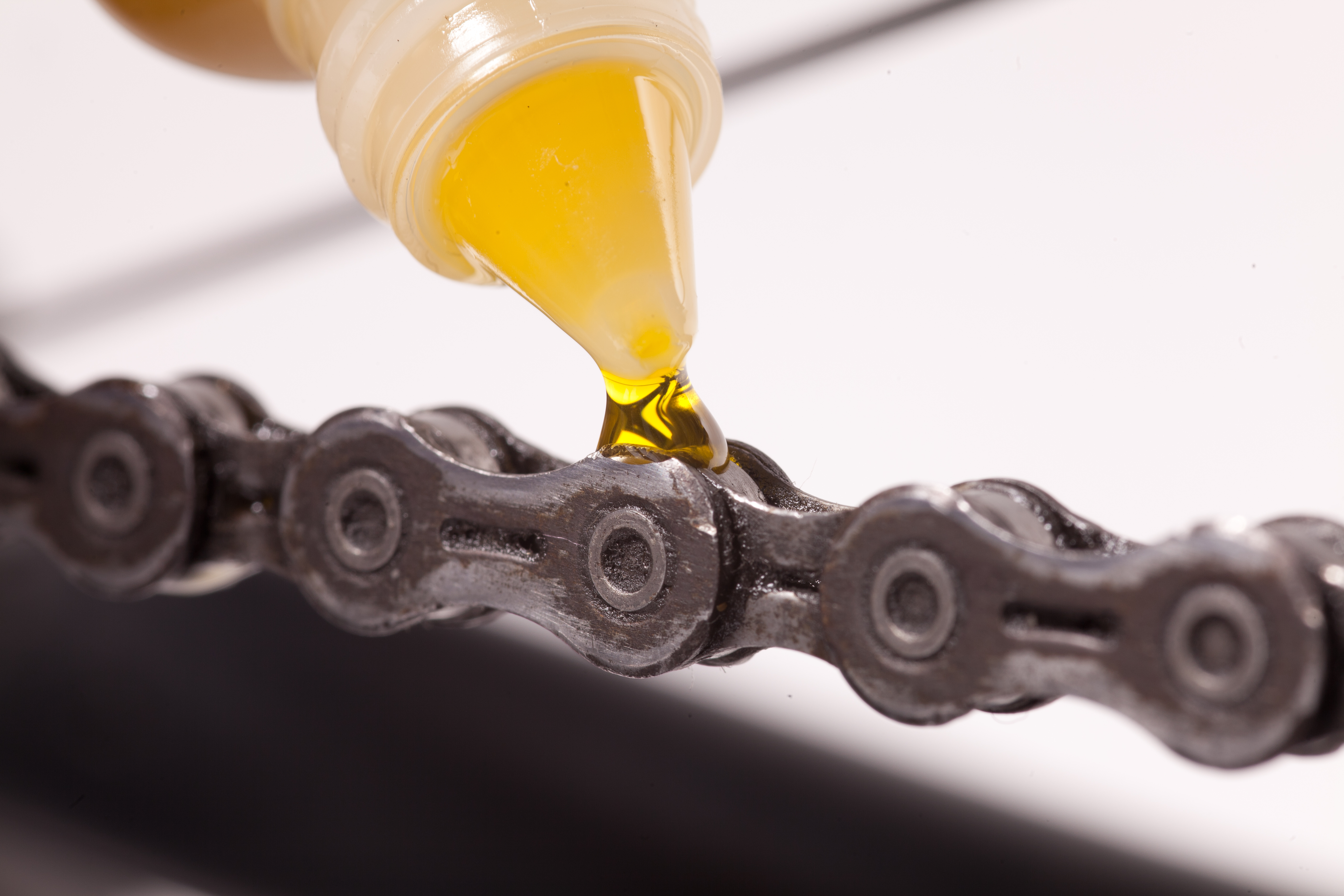 „Schmutz und alter Schmierstoff schädigen Kette, Kassette und Schaltwerk“, sagt René Filippek. Es lohnt sich also, alle paar hundert Kilometer zum Lappen zu greifen. Das Fahrrad auf den Kopf stellen, mit der einen Hand die Pedale drehen, mit der anderen Hand einen alten Lappen fest an die Kette halten. So werden altes Öl und Schmutz entfernt. Neues Kettenöl auf die Innenseite auftragen, mehrfach die Kurbel drehen und hinterher die Kette noch einmal abwischen, um überschüssiges Öl abzunehmen.